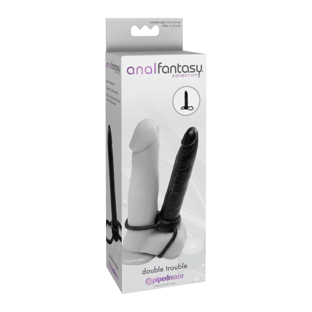 If you’ve never tried anal play, then Double Trouble is just what you need to explore the amazing world of anal stimulation. This Double Trouble strap-on allows you to experience the thrill of double penetration without involving another partner! The TPR ring on the top of the shaft acts as a performance-enhancing cock ring, while the larger bottom ring loops around his balls for a super-tight squeeze. The dildo features a tapered tip for easy entry and is completely seamless. It’s firm enough so that it won’t bend during penetration, but still feels great against your skin. Cleanup is a snap after the fun with the included Refresh Toy Cleaner and warm water. Every Anal Fantasy box features a FREE 5-Piece Prep Kit to help you ease into comfort and clean up afterwards. The kit includes 2 finger sleeves, anal desensitizing cream, anal lube, and toy cleaner. Insertable Length: 5.3 in. (13.4 cm) Width: 1 in. (2.5 cm)