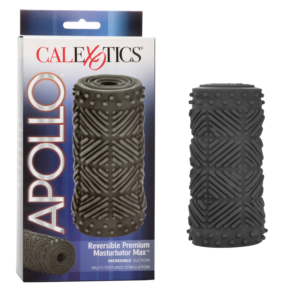 The Apollo™ Reversible Premium Masturbator Max™ gives you the ultra life-like feel of Pure Skin strokers. These intensely pleasurable strokers are soft, tight, and stretchy – they’ll fit any man.Reversible for smooth or textured simulation – your exciting choice – the Apollo™ Reversible Premium Masturbator Max™ also has a closed end for superior suction. The sleekly satisfying Max™ is super soft to the touch, with a flexible feel that provides intense stimulation. Soft and inviting, the Max™ features a sexy ridged and nubbed pattern that spirals around the stroker. Designed to please, when a smooth surface is preferred, reversal is incredibly easy. It’s as flexible as it is durable.The Apollo™ Reversible Premium Masturbator Max™ is easy to clean and maintenance free. Mimicking the feel of the real, you’ll find powerful sensations and the ultimate in sensual pleasure.This superior stroker is crafted of TPR, making you just as safe as you are satisfied with the Max™. Your gratification is our pleasure – so get ready to enjoy exciting stimulation with a sleek and thrilling stroker designed for the ultimate in both sensation and satiation.4.75” x 2.25”/12 cm x 5.75 cmUltra life-like feel Pure Skin® strokersSoft, tight and stretchy to fit any manReversible for smooth or textured stimulationClosed end for superior suctionEasy to clean and maintenance freeTPR