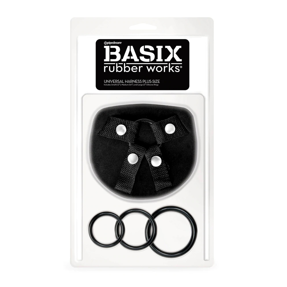 The BASIX Universal Harness is available in Regular and Plus-Size and includes 3 silicone rings. Easy to adjust and fun to use for sexy strap-on play. Most of our BASIX dildos are Strap-On ready and Harness Compatible. Includes small (1.2″) Medium (1.6″) and Large (2″) Silicone rings.