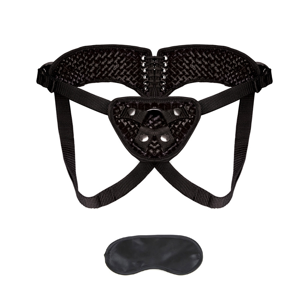 Give your partner the pleasure they need with the Lux Fetish Diamond Velvet Strap-On Corset. Features a comfortable, secure velvet harness, 4-way adjustable straps that fit hips up to 60″, and a perfectly placed bullet vibe pocket for endless clitoral stimulation. This harness can accommodate any dildo with a flared base, and includes 2 rubber holder rings.