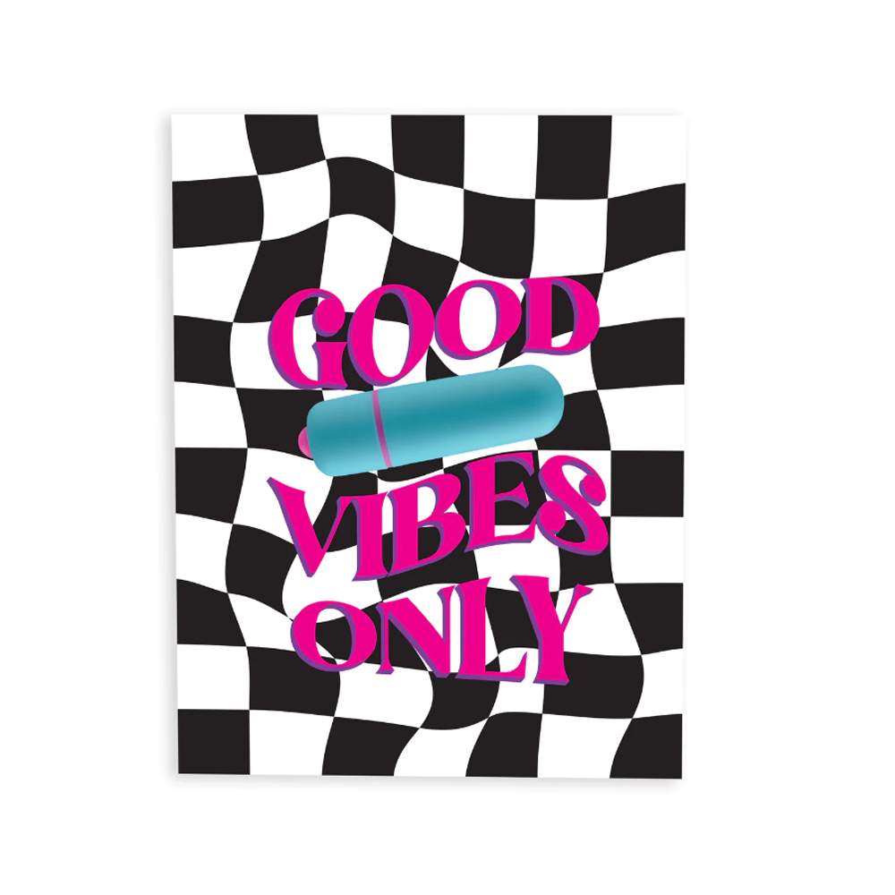 NaughtyVibes Greeting Card with a Flirty Twist!Are you ready to take your heartfelt messages to the next level of intimacy and excitement? Look no further than our innovative NaughtyVibes Greeting Card, designed to bring joy, laughter, and a whole lot of pleasure to your special moments.Features:Card Message: Good Vibes OnlySize: A2 4.25″ x 5.5″Greeting Card + Envelope + Honey Stinger Rock Candy Bullet Vibrator and Vibrator Wipes.Plastic Resealable Packaging with Circle Branded sticker.Special Instructions: Informational Instructions on Back Of Card.