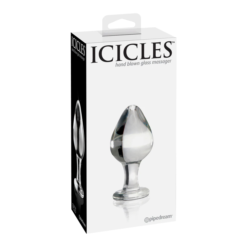 Elegant, upscale, and hand-crafted with amazing attention to detail, this luxurious line of glass massagers will leave you breathless. Each hand-blown Icicle glass wand is sleek, unique, and made to play hard. The hypoallergenic glass is nonporous and body safe, and when cared for properly, is designed to last a lifetime. Run the plug under warm water to heat things up, or chill it under cold water for a cool sensation. Use with plenty of Moist Body Lotion for an extra wet and wild experience! Cleanup is a snap after the fun with Pipedream Toy Cleaner and warm water. Length: 3.5 in. (9 cm) Insertable Length: 3 in. (7.5 cm) Width: 1.75 in. (4.5 cm)