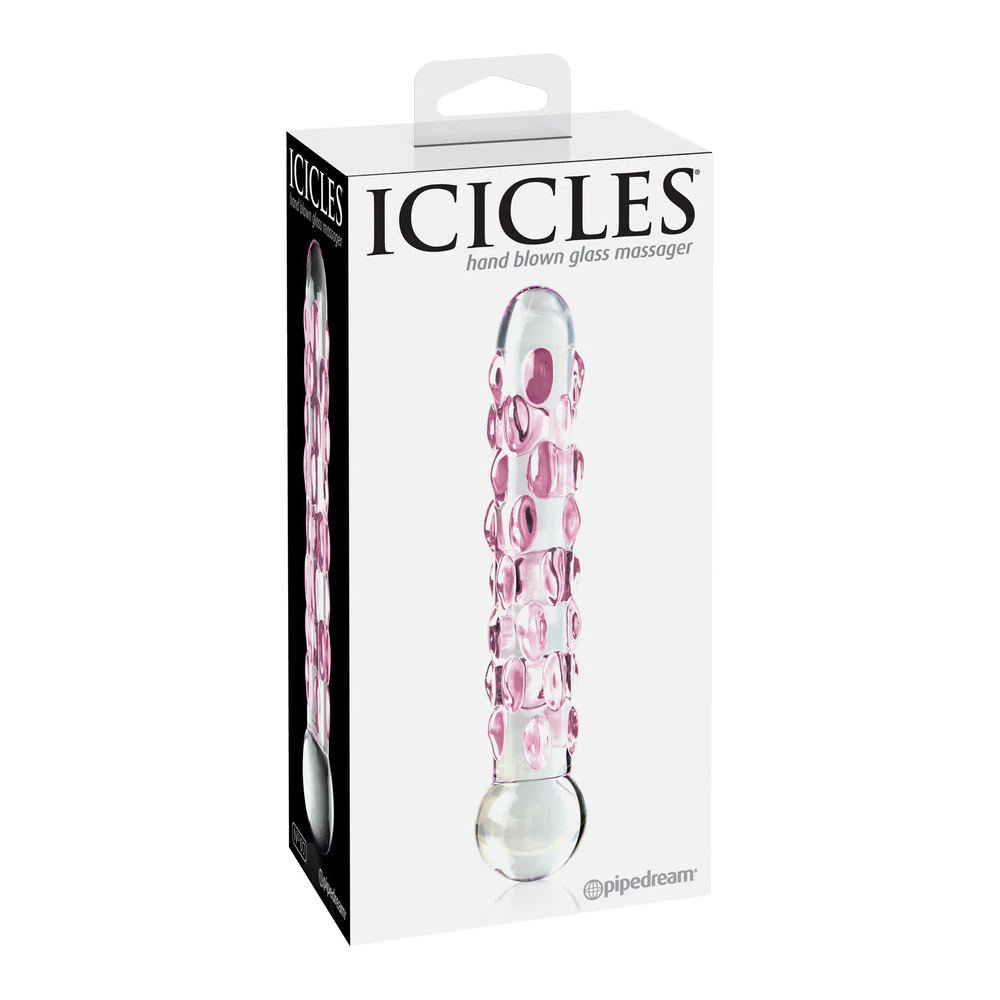 Elegant, upscale, and hand-crafted with amazing attention to detail, this luxurious line of glass massagers will leave you breathless. Each hand-blown Icicle glass wand is sleek, unique, and made to play hard. The hypoallergenic glass is nonporous and body safe, and when cared for properly, is designed to last a lifetime. Run the wand under warm water to heat things up, or chill it under cold water for a cool sensation. Use with plenty of Moist Body Lotion for an extra wet and wild experience! Cleanup is a snap after the fun with Pipedream Toy Cleaner and warm water. Length: 7 in. (17.8 cm) Insertable Length: 5.75 in. (14.5 cm) Width: 1.5 in. (3.8 cm)