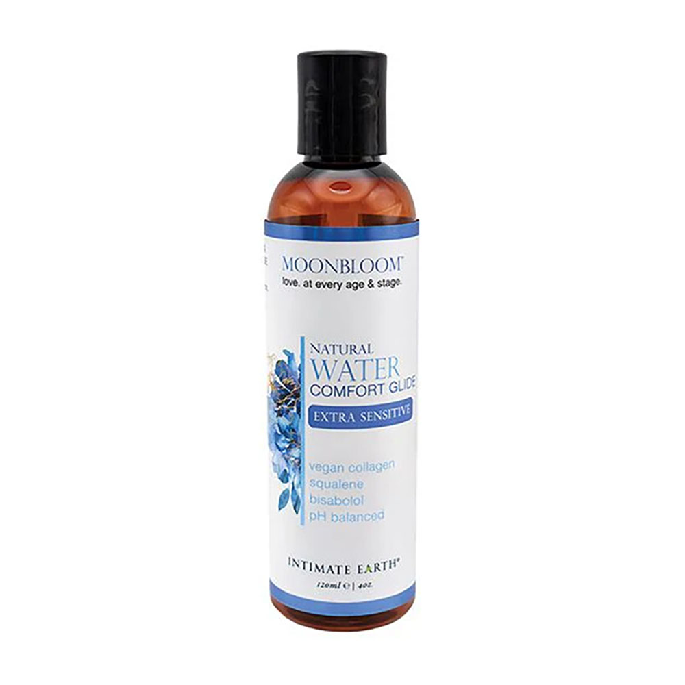 MoonBloom for Menopause – Natural Water Comfort Glide Extra Sensitive is specially crafted for women experiencing menopause and perimenopause. This silky, water-based formula is designed to mimic the body’s natural moisture, helping provide gentle hydration and smooth comfort for delicate, sensitive skin. Enriched with vegan collagen, squalene, and bisabolol, it helps nourish and soothe while supporting a soft, glide-friendly feel. Infused with organic extracts and natural botanicals, this DHEA-free formula is ideal for everyday intimacy and is safe to use with silicone toys. Simply apply to the desired area and enjoy lasting comfort. If irritation occurs, discontinue use.