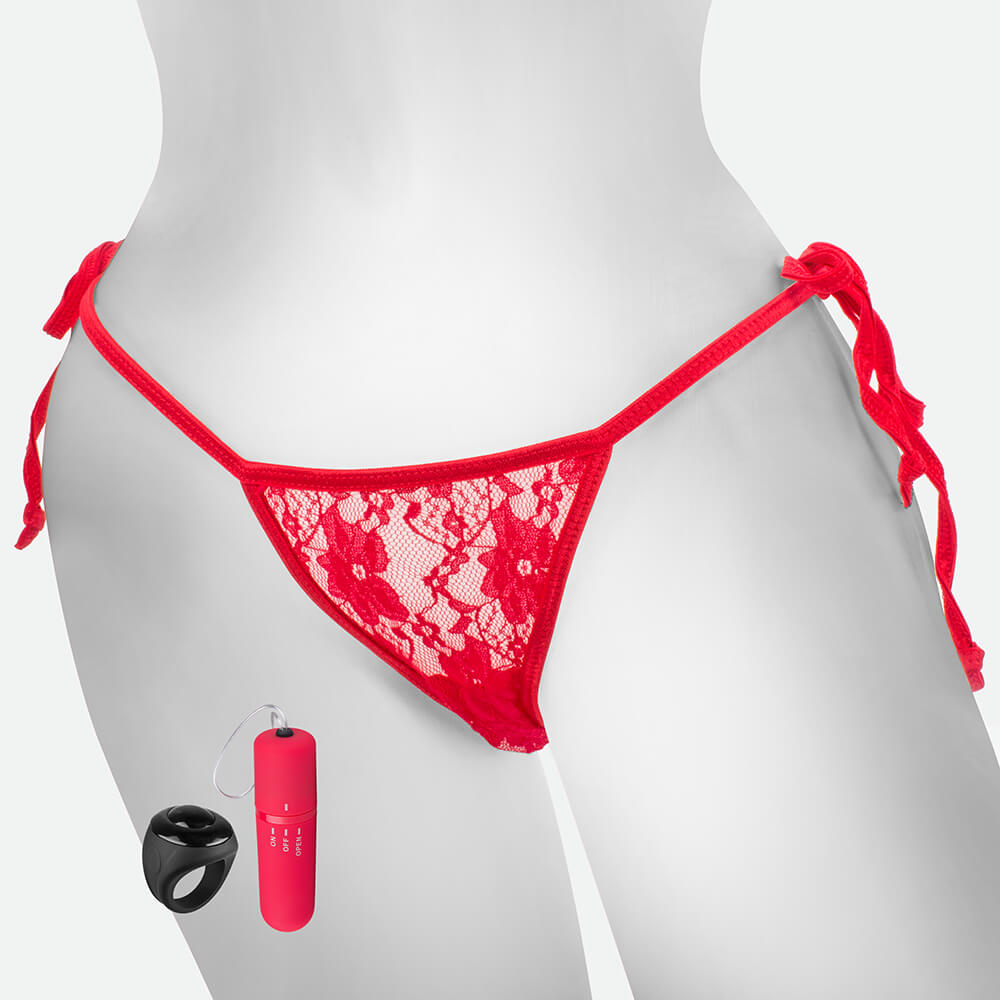 Put the power of pleasure into shoppers’ hands with My Secret Vibrating Panty Set, a super-powered vibrating bullet that fits discreetly into a side-tie lace panty to keep it perfectly in place. Operated by a remote control disguised as a finger ring, the My Secret Vibrating Panty Set works from up to 50 feet away makes it fun and easy for couples to play in public. When worn in the panty’s pocket, the powerful Bullet sits comfortably against the body and buzzes with 10 different vibration functions designed to tease, please and make her plead for more. Discreet enough to wear under clothing and out on the town and sexy enough to match with any lingerie, the My Secret Vibrating Panty Set is a sexy solution for spicing up any sex life!• 10-function bullet fits comfortably into lace panty (included)• Remote control disguised as an ordinary finger ring• Works from up to 50 feet away• Side-tie panty fits up to 60-inch waists• Batteries can be changed on both the ring and bullet