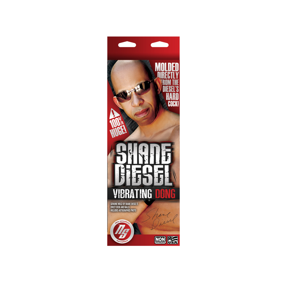 This version of Shane Diesel’s signature dong vibrates with an intense strong bullet placed at the tip of the dong, and features a 7-function controller (low/medium/high speeds, as well as 4 unique pulsating functions). Made in the USA of futuristic life-like materials (Phthalate Free PVC), this dong is a welcome challenge for everyone who is wondering…. how does it feel to take on the Diesel? Uses 3 AAA batteries (not included).