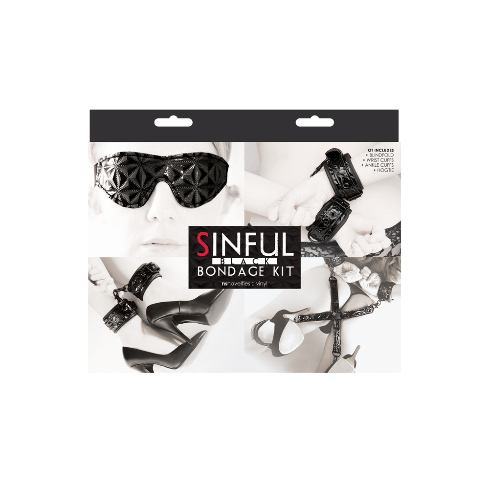 Everything needed for an evening of exhilarating BDSM fun is inside The Sinful Bondage Kit, an upscale, ready-to-go collection of exquisite restraints for both the novice and enthusiast. Available in colors Midnight Black and Fuchsia, the kit includes wrist and ankle cuffs, hogtie, and blindfold, all even-stitched and neoprene-lined for added comfort during long play dates. All Sinful items are black anodized for durability and feature nickel-free hardware. Take home The Sinful Bondage Kit from NS Novelties and unleash the fantasies within.