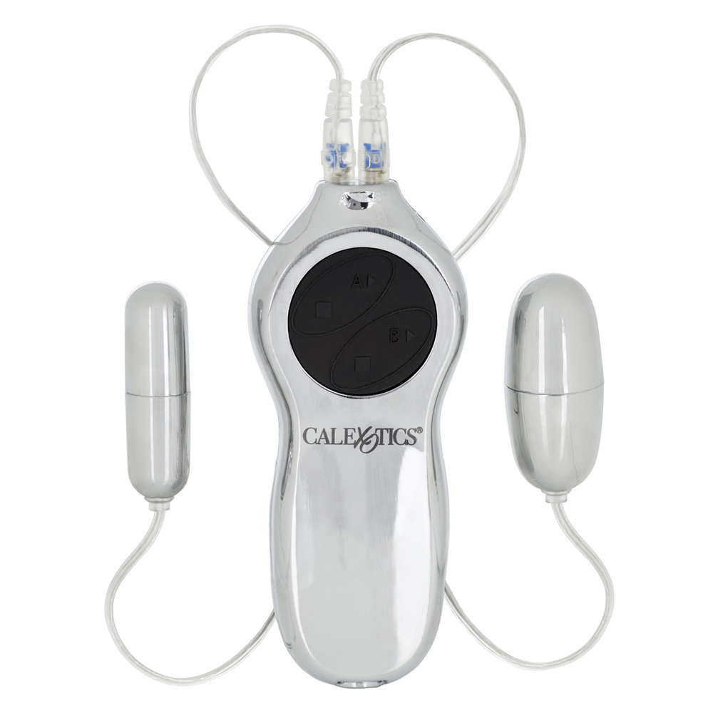 Sophisticated women deserve sophisticated choices to match their style and deliver on their every desire. With the Sterling Collection, creating your dream toy is easy. This collection is the first interchangeable collection of controllers, plug-in jacks, and bullets that are available in individual packaging for mix-and-match fun or in pre-designed sets for carefully curated, optimum pleasure.The Sterling Collection’s Combo 5 pack is a unique, sleek, and powerful vibrating combination that puts every ounce of your pleasure in the palm of your hand. The controller features independent controls and is made with a gleaming, glamorous silver material, and its rounded design fits perfectly in the palm of your hand.The controller’s7 functions of vibration and pulsation will drive you wild with erotic options. Take things slow and tease yourself to a powerful finish or race to an explosive orgasm. Every second of pleasure is in your hands.The controller comes equipped with two jacks, so you can easily attach two powerful stimulators for allover vibrating intensity. Your Combo 5 pack includes two elegant silver bullets—one slim and the other rounded—so you can massage more than one spot at once. It’s great for both solo and partnered play.All you need to get started are 4 AA batteries. Treat yourself to an array of erotic sensations and explore just how many ways there are to get yourself there. Indulge in true elegance with this combo.Powerful 7-functi