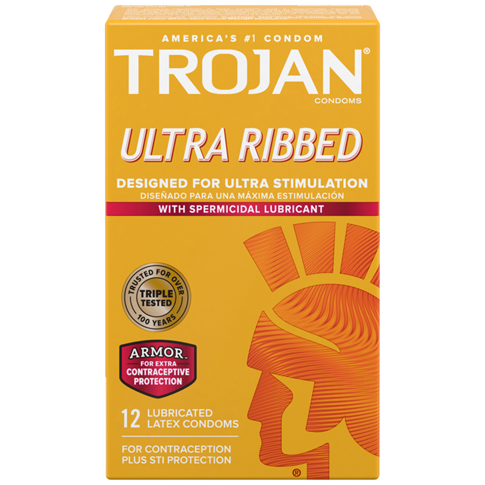 Trojan Stimulations Ultra Ribbed Spermicidal Condoms are designed with deep ribs to increase stimulation. These condoms have deep ribbing at the base and the end for an enhanced effect on both partners. Nonoxynol-9 Spermicide is on this condom for extra protection against pregnancy ONLY – NOT for extra protection against HIV and other STIs. They’re made from a premium quality latex and are electronically tested to help ensure reliability. These condoms reduce the risk of unintended pregnancy and sexually transmitted infections (STIs) while you play. For extra safety, there is a special reservoir end. TROJAN Brand condoms are America’s #1 condom, trusted for over 100 years. The TROJAN Brand promotes a safe, healthy and fun sex life. From condoms to vibrators to lubricants, TROJAN Brand is dedicated to delivering innovative, high-quality products that offer pleasure and protection.Deeper Ribs than Ever Before-Designed to increase stimulation Made from Premium Quality Latex-To help reduce the risk Nonoxynol-9 Spermicide is on this condom for extra protection against pregnancy ONLY – NOT for extra protection against AIDS and other STDs Active ingredient: Nonoxynol-9 (7%). Some people are sensitive to Nonoxynol-9. Special Reservoir End-For extra safety Each Condom Is Electronically Tested-To help ensure reliability CAUTION: Spermicidal Lubricants Are For Extra Protection Against Pregnancy. Spermicidal Lubricants Are Not For Rectal Use Or More-Than-Once-A-Day Vagi