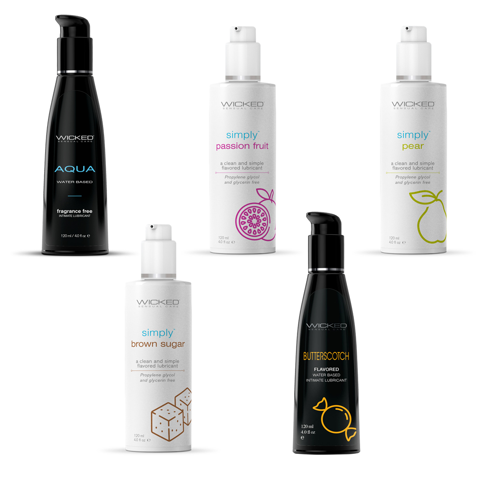 Wicked Sensual Care Bundle #3Includes:Wicked Aqua Lube 4 oz. x6Wicked Simply Brown Sugar 4 oz. x6Wicked Simply Passion Fruit 4 oz. x6Wicked Aqua Butterscotch 4 oz. x6Wicked Simply Pear 4 oz. x6